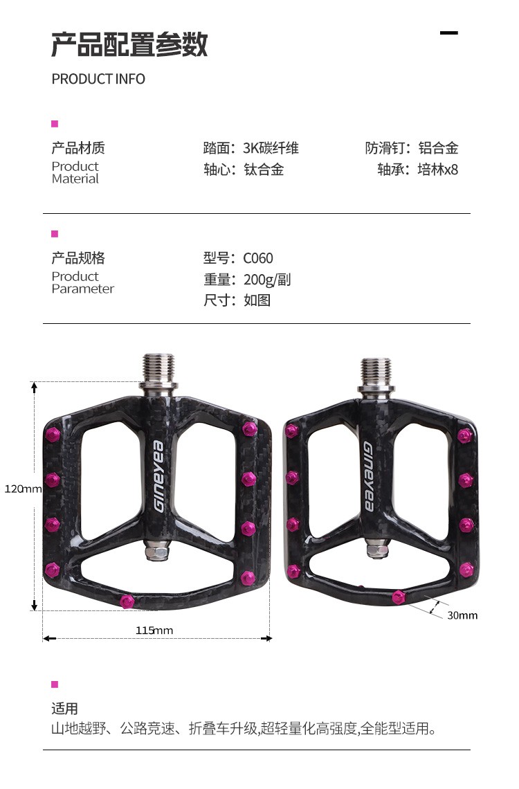 景曄碳纖維腳踏公路山地自行車鈦合金超輕8培林防滑腳踏