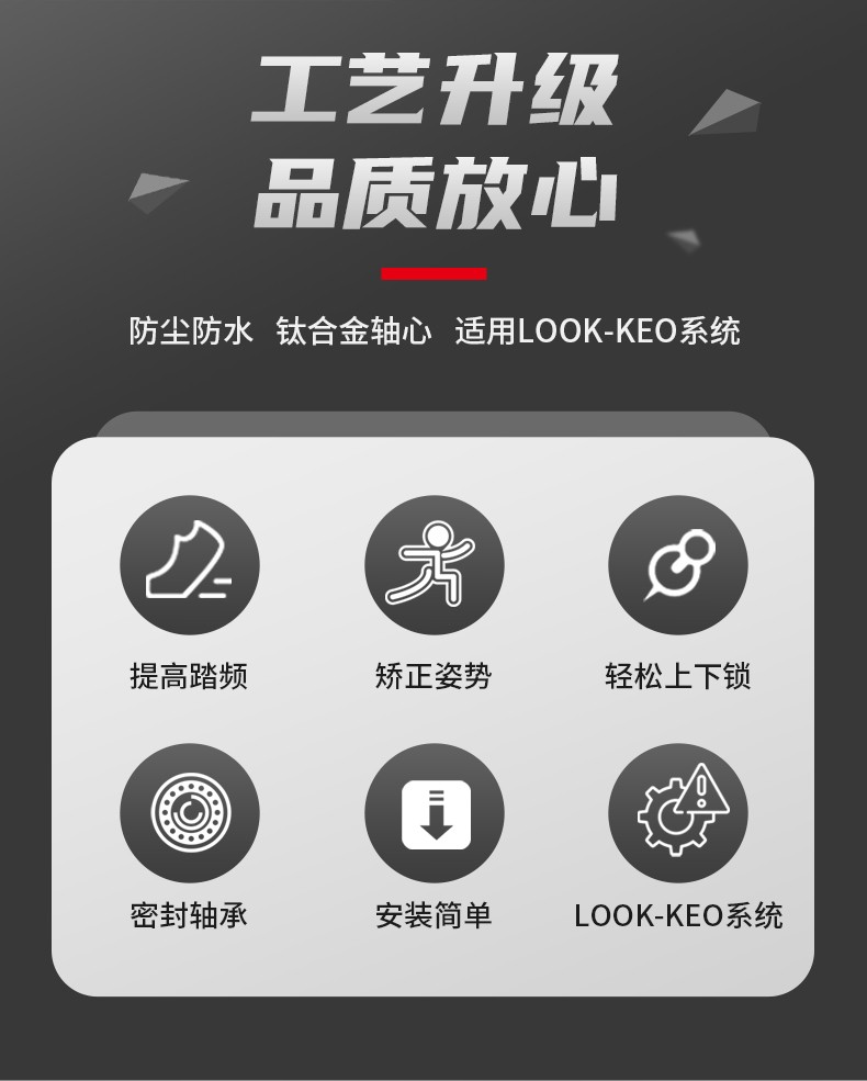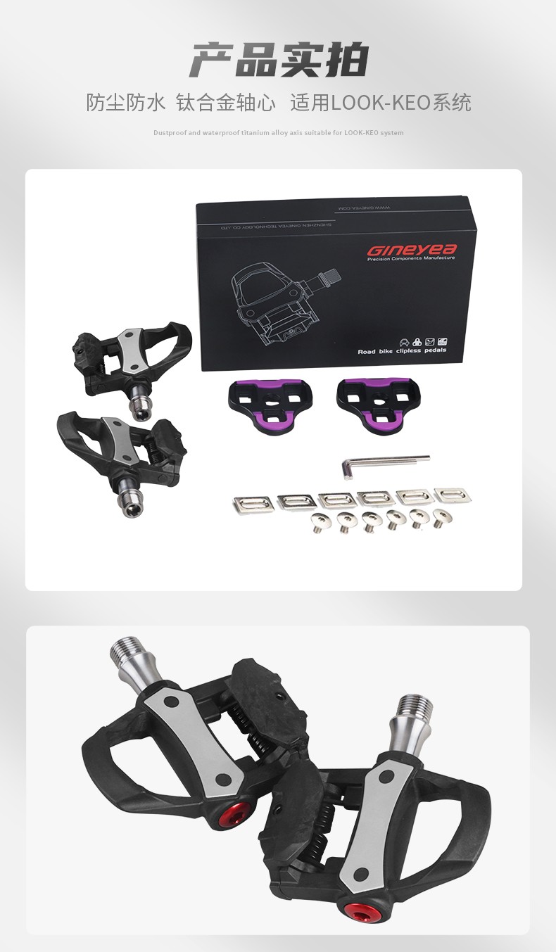 景曄公路車鎖踏三培林碳纖鈦軸自行車腳踏兼容Look系統附鎖片配件