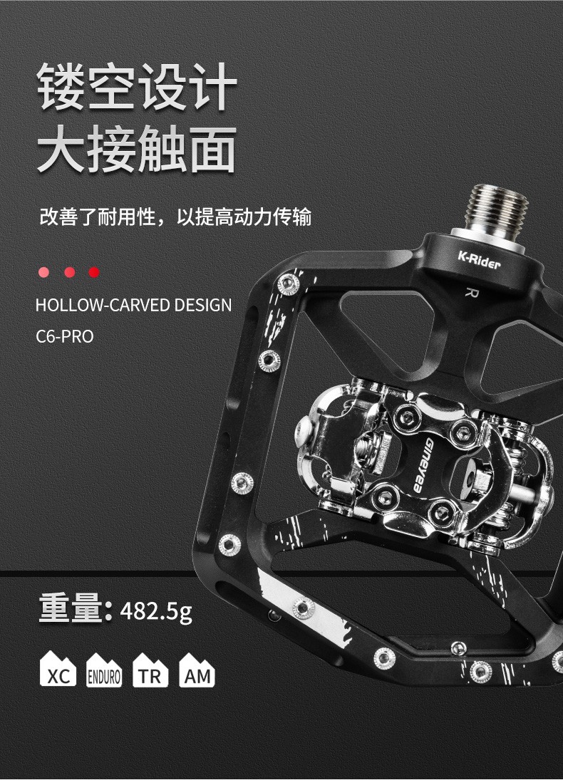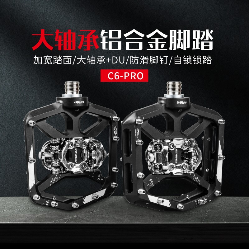 景曄新款C6Pro山地車鎖踏 自行車腳踏鋁合金大軸承DU山地車腳踏板
